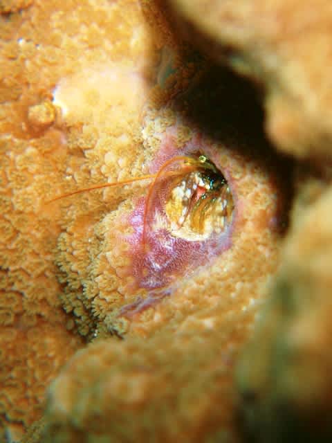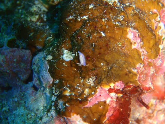なので、イセエビを探しに?地形を抜けたり、岩の隙間に小さなウコンハネガイ