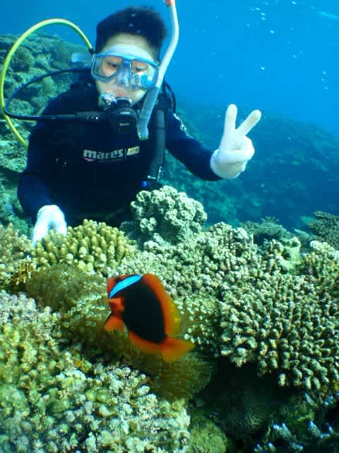 ハマクマノミと記念撮影したり、珊瑚礁畑をのんびり泳ぎながら楽しんできましたよ。
