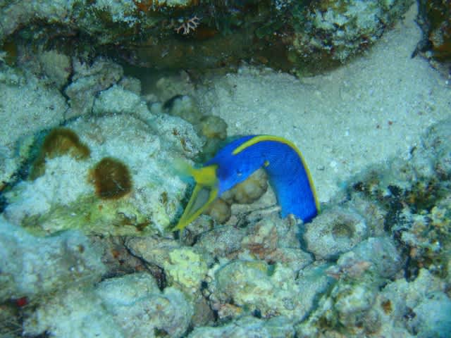 ハナヒゲウツボ青&黒と今日も2匹健在でしたよ。ハダカハオコぜを見たり