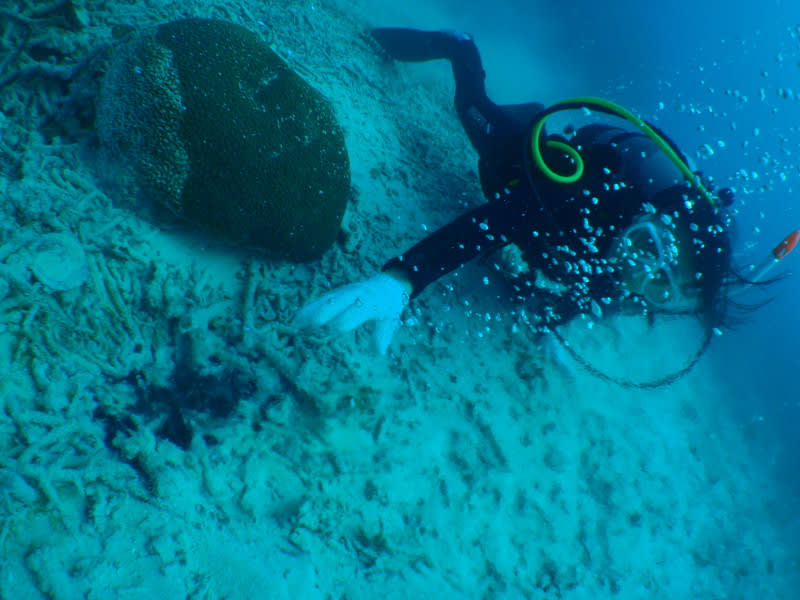 こちらもサンゴの群生の上を泳ぎながら、温泉にたどり着くと暖かい