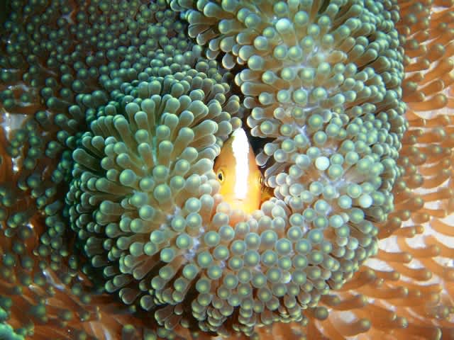 今日の生き物・カザリイソギンチャクエビ・イソバナガニ・ルリスズメダイ・