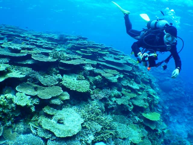 水深の浅い場所には、テーブル珊瑚がびっしり群生してとっても綺麗です\(^o^)/