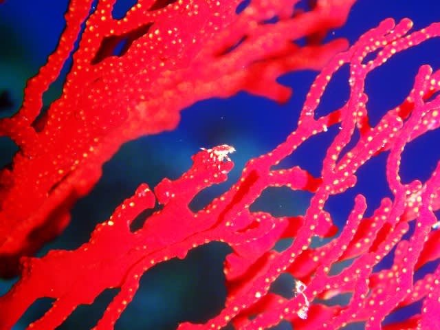 水中をゆっくり移動しながら、やらかいサンゴ(ソフトコーラル)を触ったり