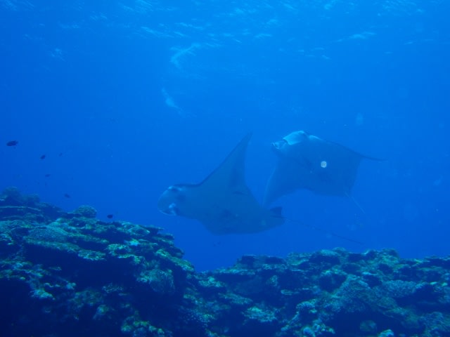 ポイントに到着後はすぐさま水中へ入り、二枚のマンタをゲッツ!!