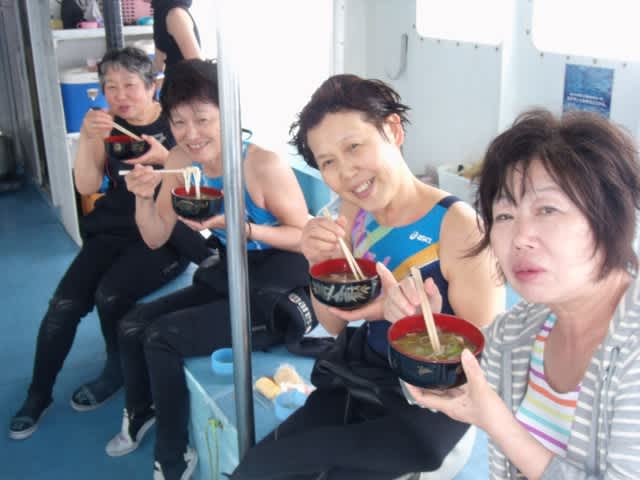 昼食も温かい、スープとおにぎりを頂いて、午後からはマンタ郎に会いに