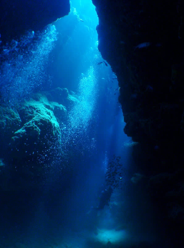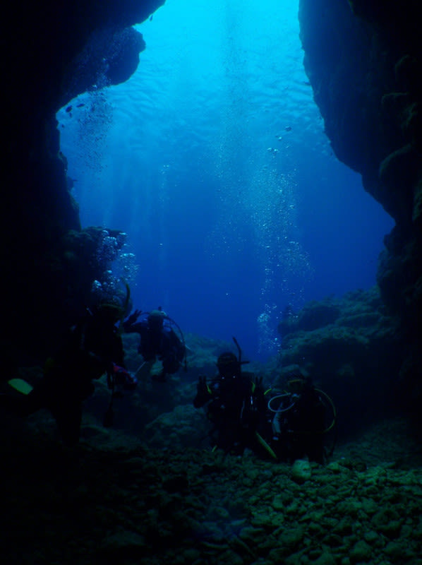 二本目は、ドーンと地形ダイブです♪アーチの中は光も入っててとっても綺麗