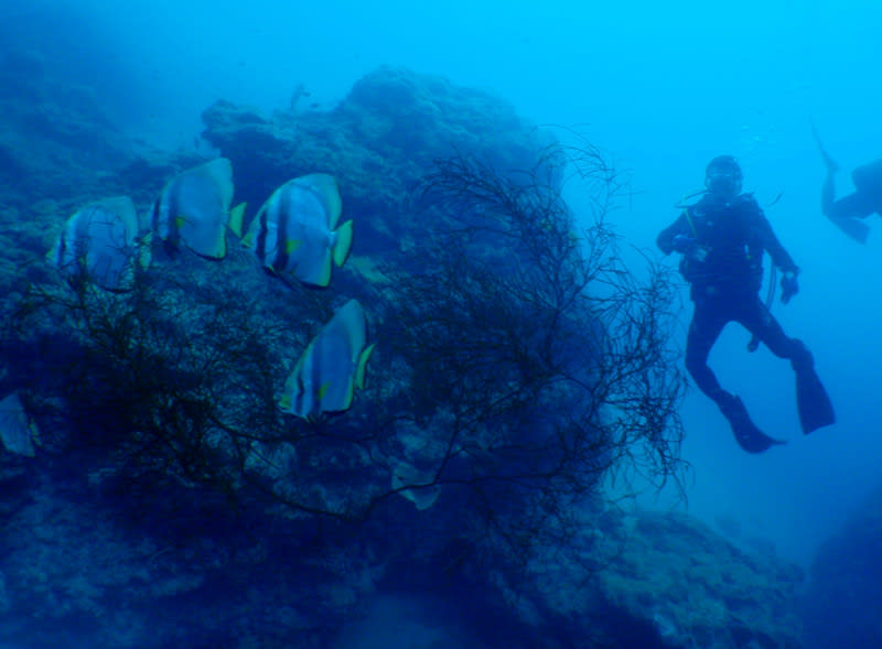 大きなサメも一匹登場で、ネッタイミノカサゴ2匹とハナミノカサゴ1匹と大きなイソバナに