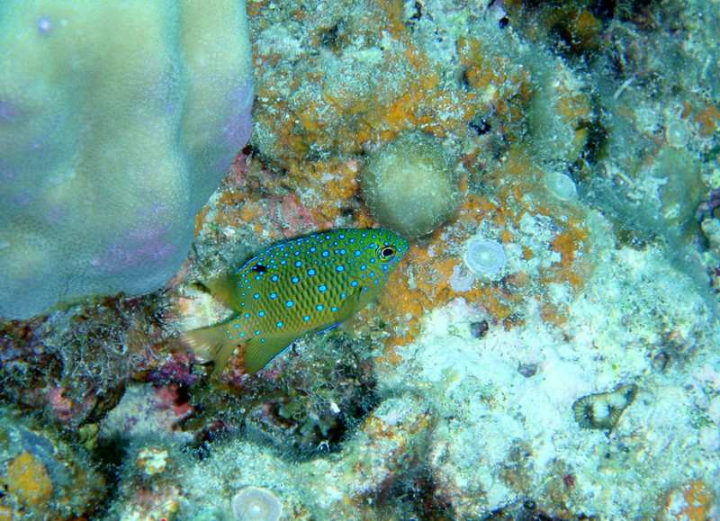 ルリホシスズメダイの幼魚・アサドスズメダイ・アカククリ・ホワイトチップシャーク