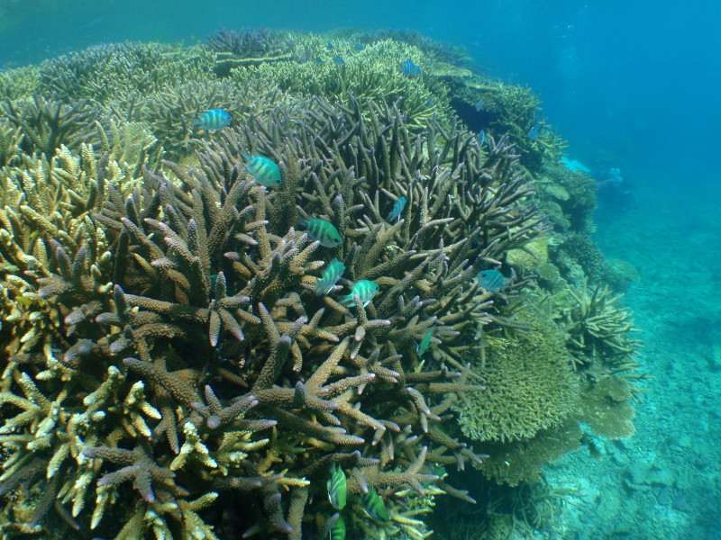 前回は、コモンシコロサンゴにグルクンの稚魚がどっさり群れてたのに