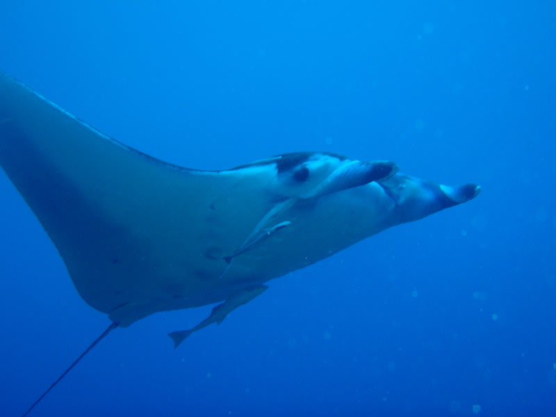 一枚のマンタ朗がボートの近くでぐるりぐるり回って去って行きました
