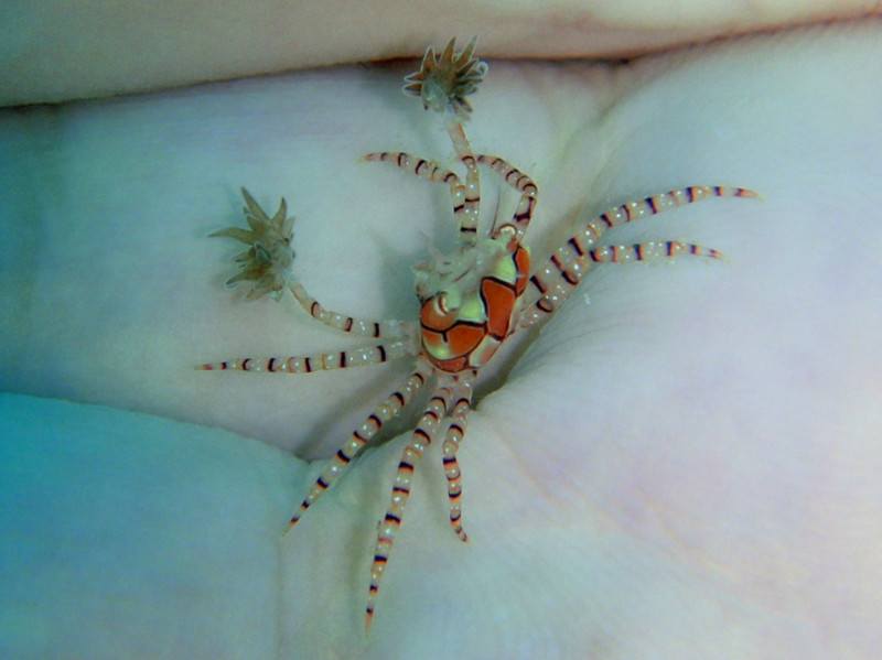 クレエビやガレをめくるとペアーで逃げだしたオトヒメエビなど、目が赤くて