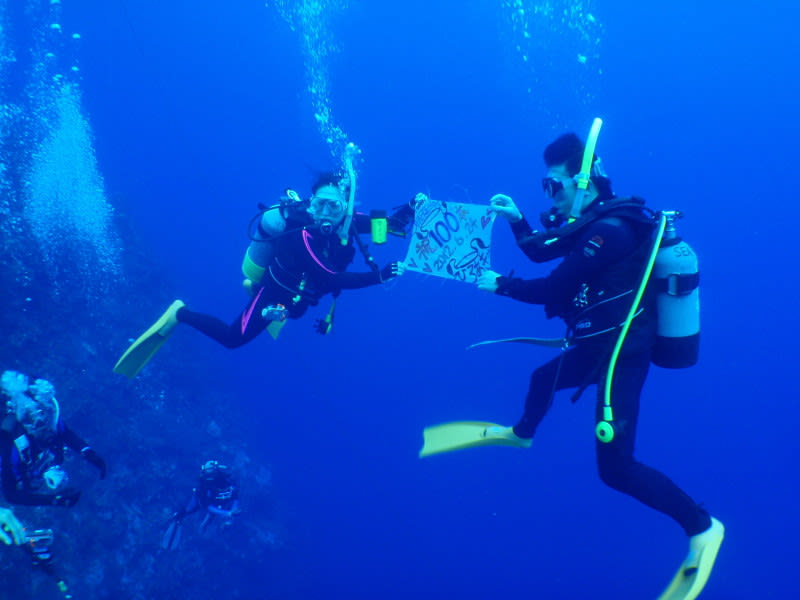 二本目にシラカワさん祝100本記念でしたよ(*^。^*)青い海で祝100本おめでとう