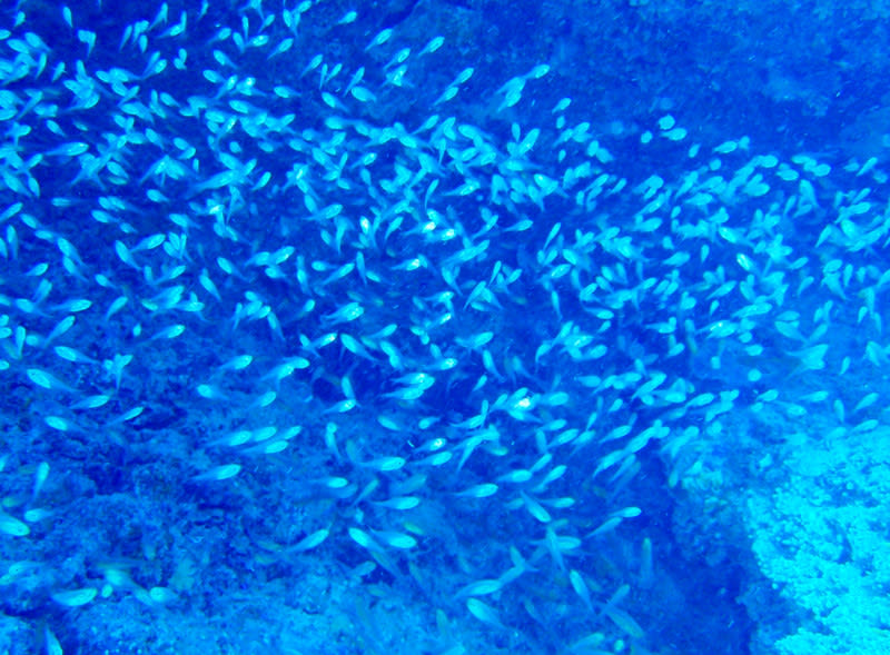穏やかな水中を泳いでいると、目の前にはグルクマの群れがドーンっと