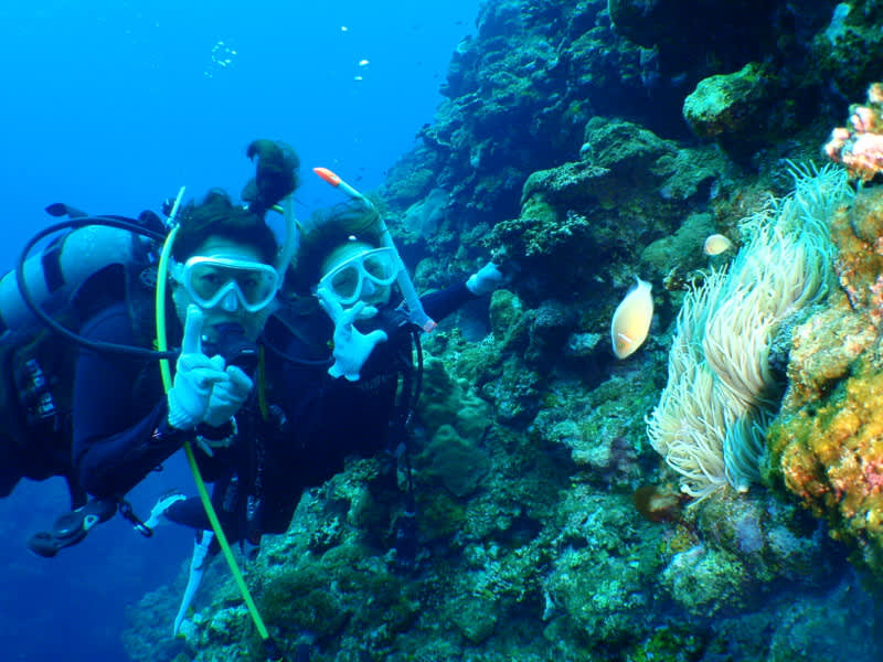 ハマクマノミに指をかじられたり、オニヒトデを発見したりと