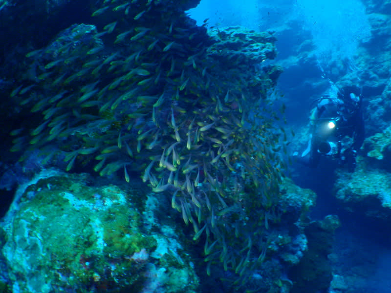 流れもそれ程強くなかったのですが、サンゴの周りにはスズメダイの群れや