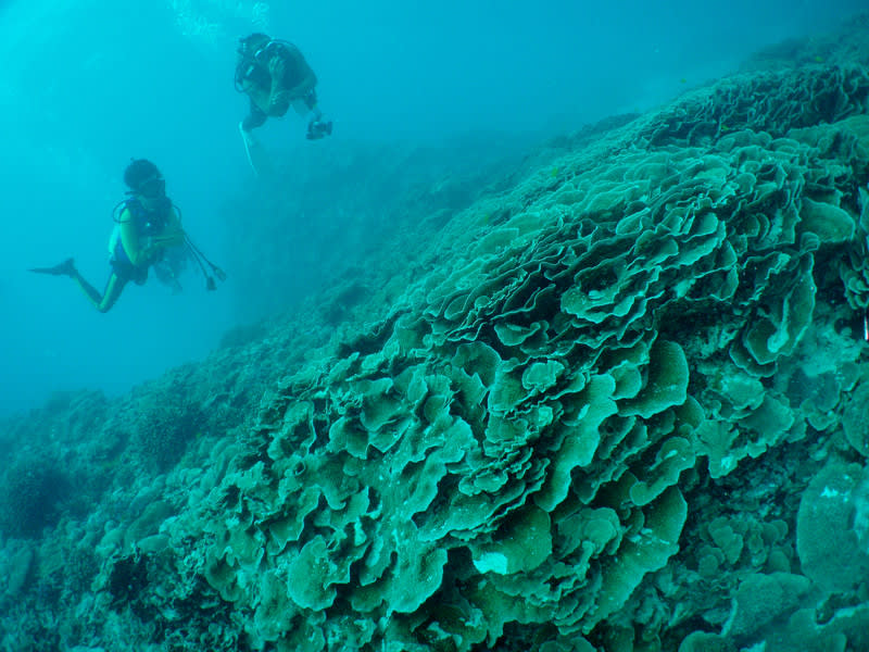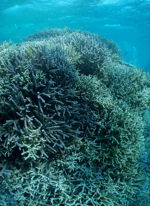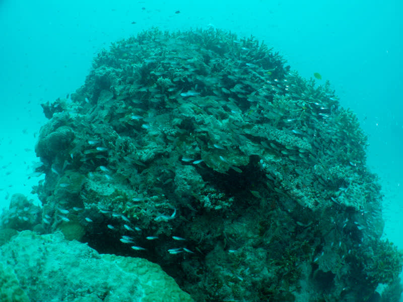 サンゴビッシリで浅場には枝サンゴが群生がビッシリで、サンゴ畑に