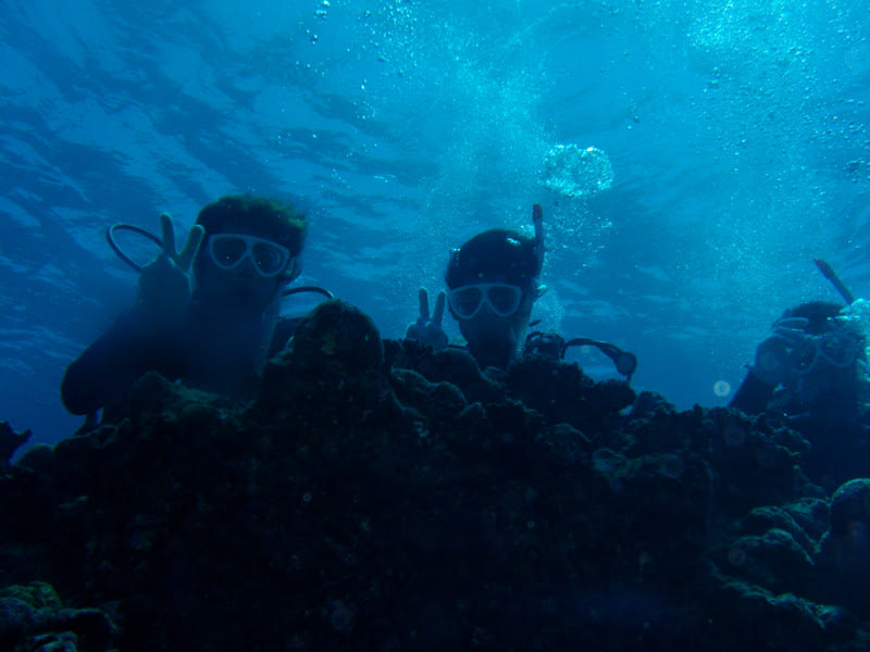 まずはどっさりのサンゴを見ながらスノーケル))