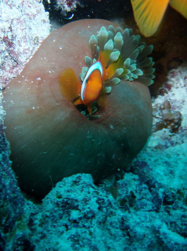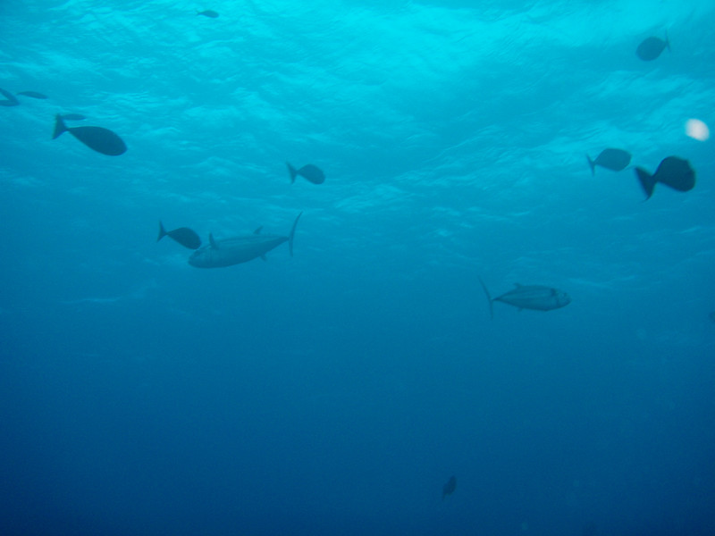 少しヒンヤリする水中では、長~い魚を見たり、デバスズメダイに囲まれたり