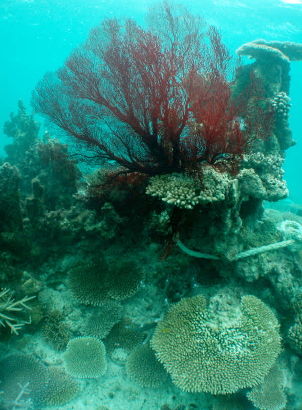 サンゴの中には、久しぶりに見たアカテンコバンハゼなども