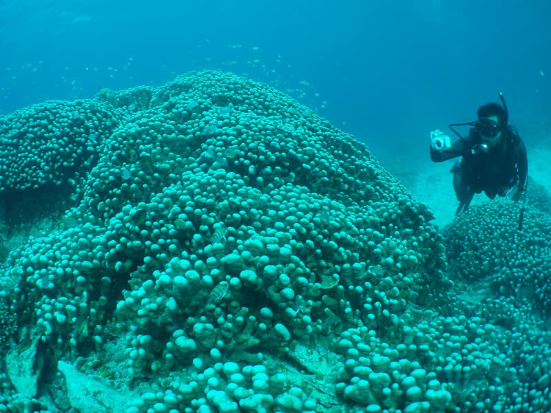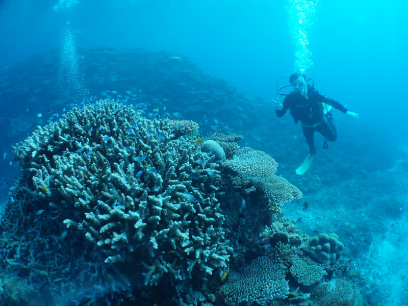 目の前いっぱいに広がるサンゴに、触れてしまえそうな