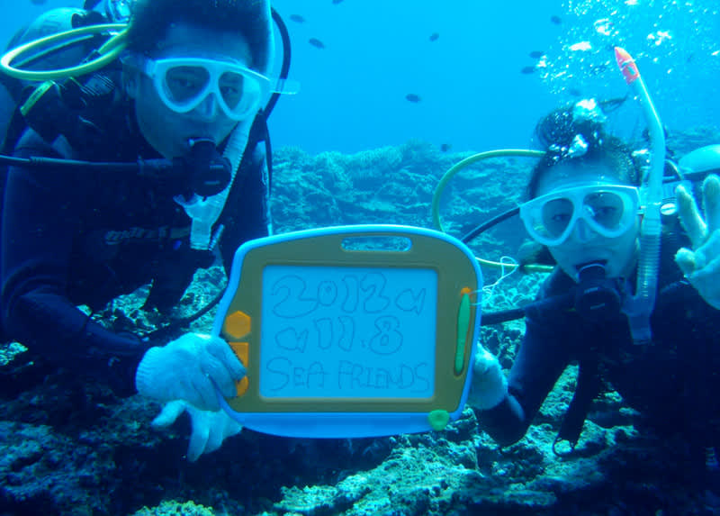 今日の体験ダイバーはシミズさんとシマヅさん=