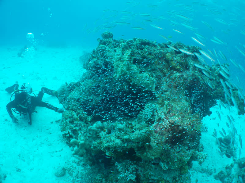 近くのポイントに船を止め、いざ水中へ(^。^)