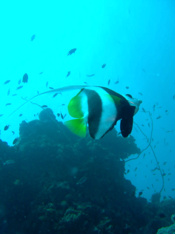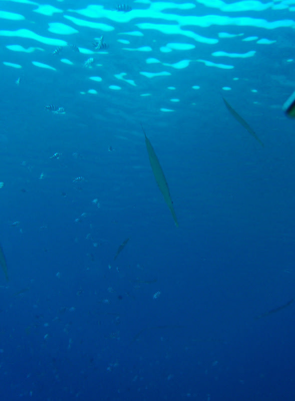 そこかしこにはスリムボディなアオヤガラがふよふよ))