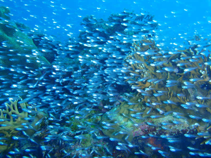 潜ってみるとマンタの姿なし・・・・・カスミチョウチョウオの群れ