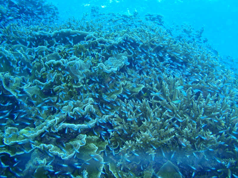 サンゴの周りにスカシの群れがわんさか群れてて、ごみにしか見えない<o:p></o:p>