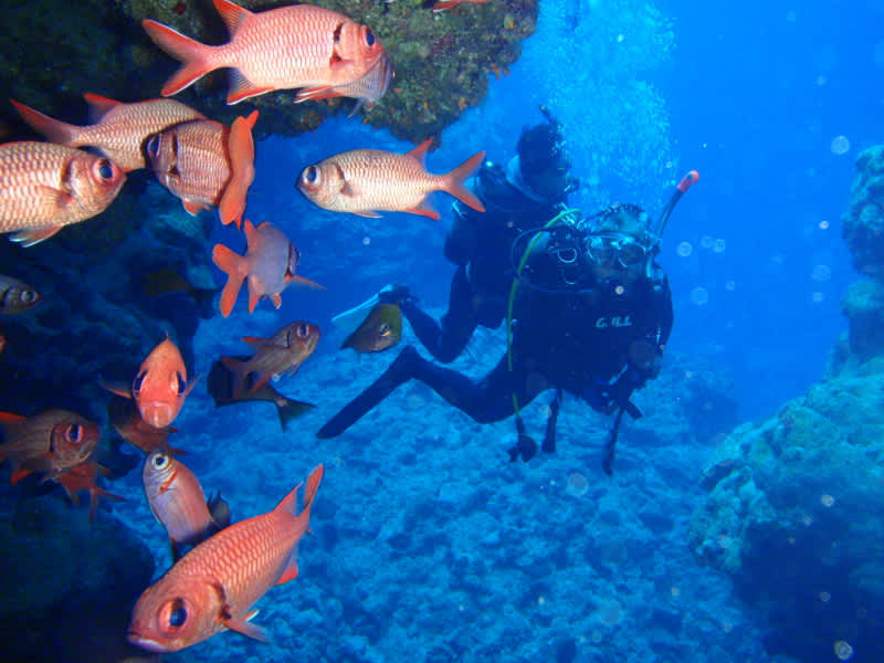 Vに割れた地形を楽しんだり、ウミウシ見たり、サメ見たりとのんびり<o:p></o:p>