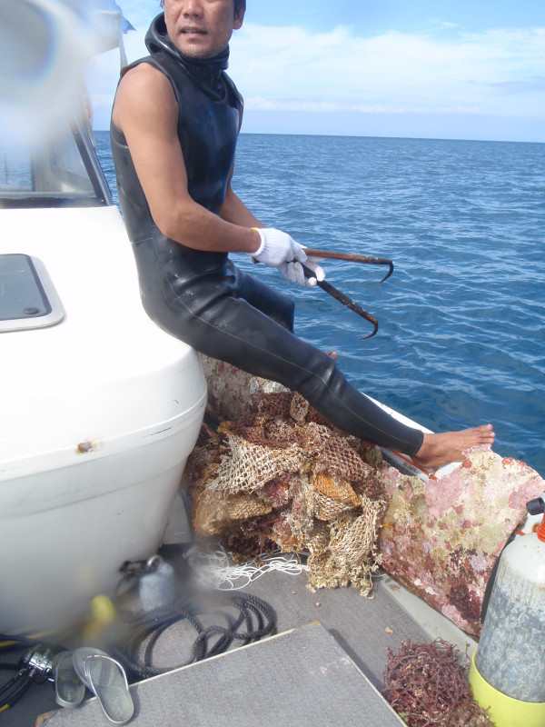 です(^O^)マンタ探したのですが、何故かボートに上がって5分したら水面にプカプカ