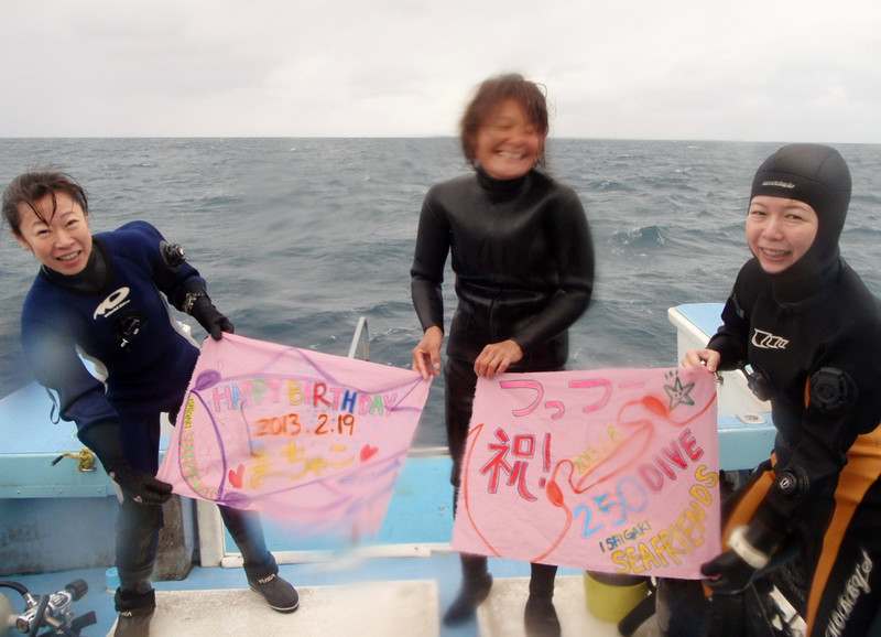 一本目から、カシワギさん祝250本記念ダイブ!(^^)!イシイさんはバースデー