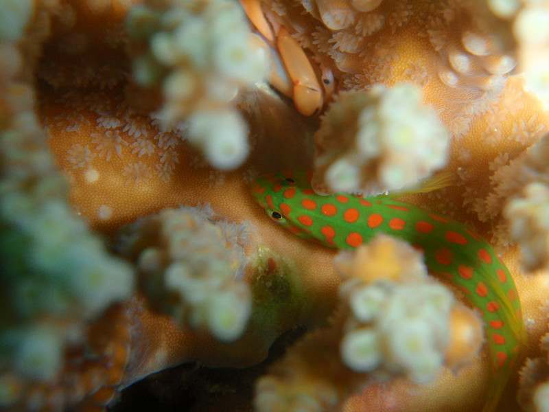 珊瑚は相変わらず元気で、珊瑚の中に隠れてるアカテンコバンハゼやサンゴキイロハゼ