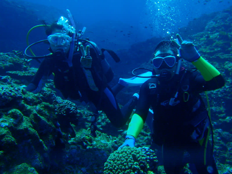 今日は、到着後でリピーターのカシワギさんイシイさんのお二人とファンダイビング