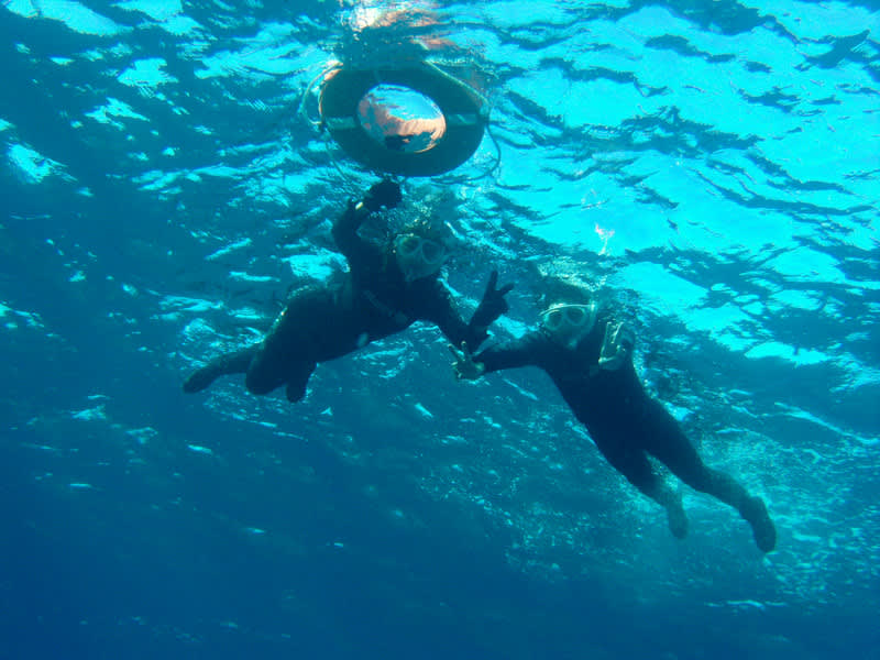 寒くないです!?だって、お二人はドライスーツに包まれて、水中も