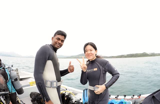 アリサⅤは、リフレッシュダイブでカリヤワサムさん夫婦と楽しんで