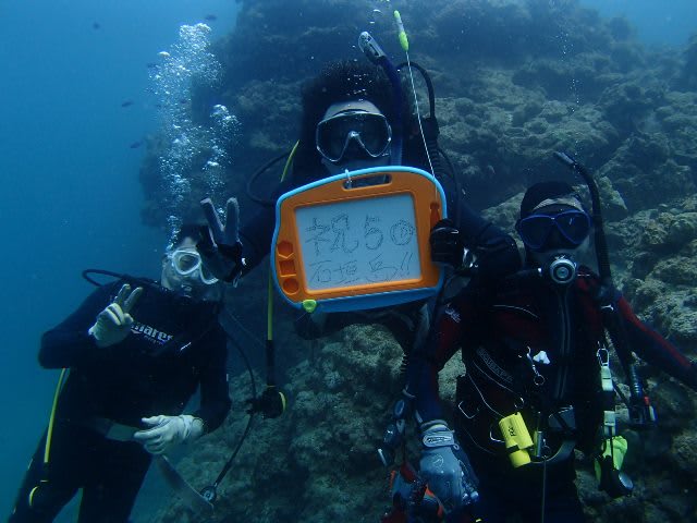 のセキネさん、本日2本目に祝50本おめでとうダイブでしたよ(^_^)/