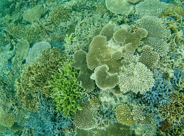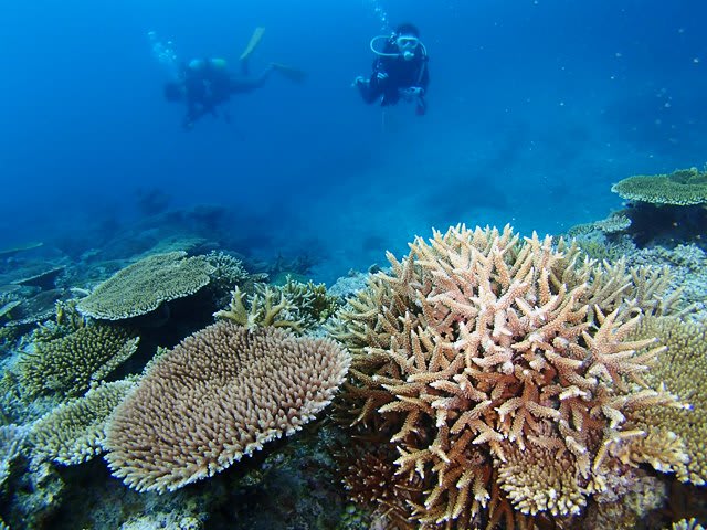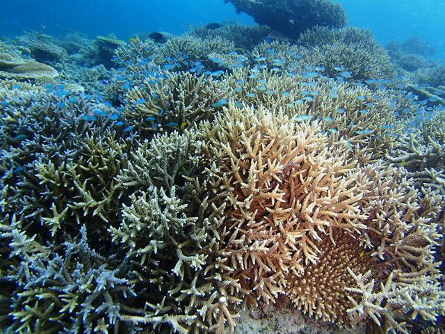 一か所めは穏やかでカラフルなサンゴが元気いっぱいに