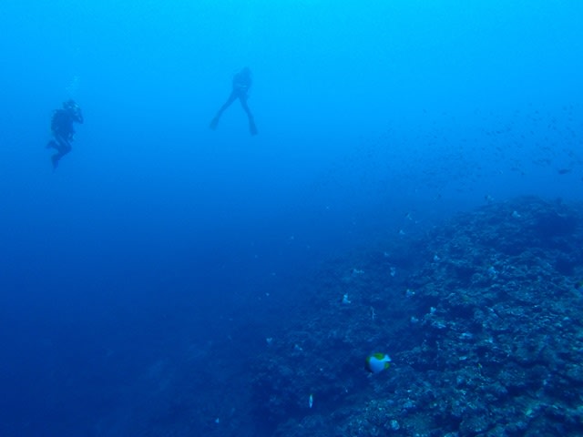 一本目は、スコーンと深場に行きディープ講習です。こちらにもアカウミガメ