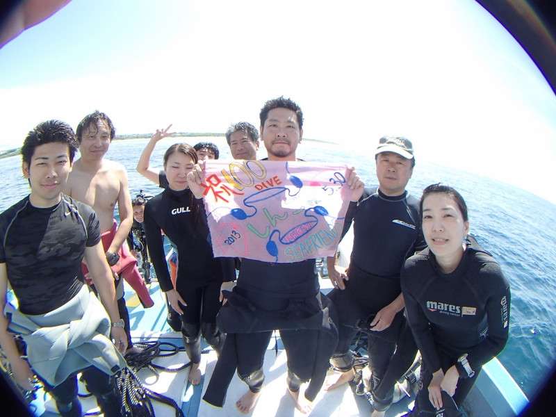 本日一本目に、ゲストのムラカミさん祝100本記念ダイブでした。