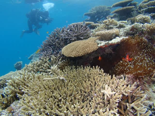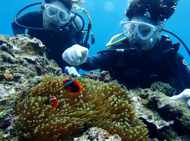 おもちゃみたいに泳ぐブダイやかわいいハマクマノミ