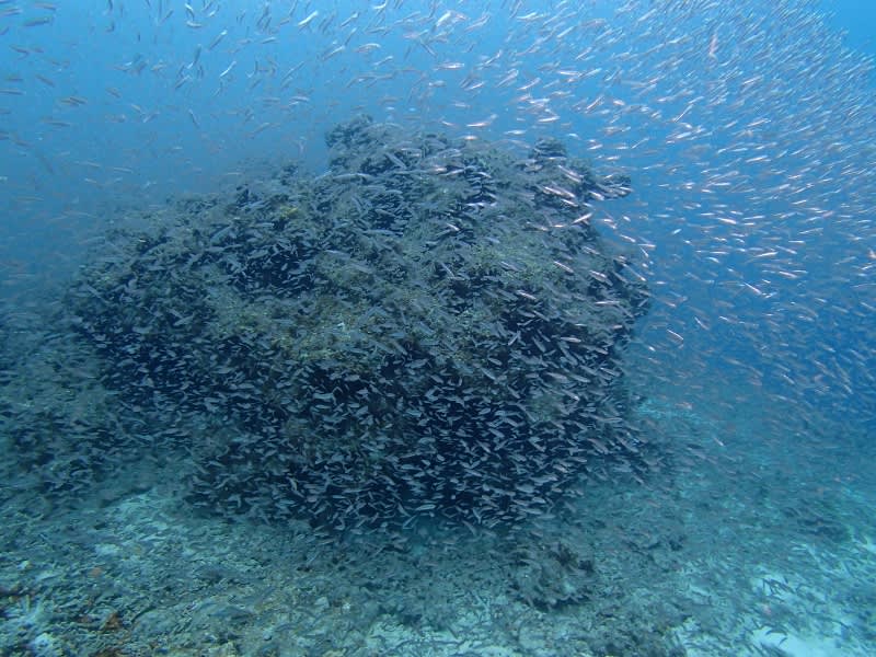海の方は、ジャガイモサンゴに癒されて、ドロップでグルクンの稚魚に囲まれ