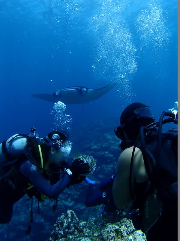 OK、ランチ、マンタ、僕の片言の日本がしか通じませんけど、海の中で