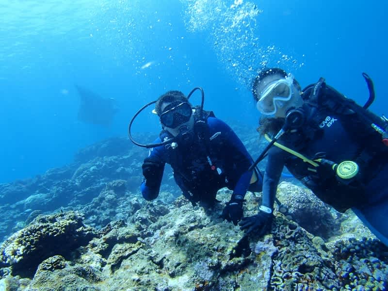 しちゃってましたよ!(^^)!お二人とも目の前に現れたマンタに興奮しまくり