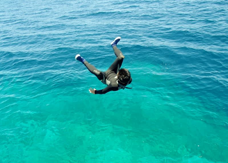 初の海遊びに感動する人も たまらなくなって潜る人もヽ(^o^)丿
