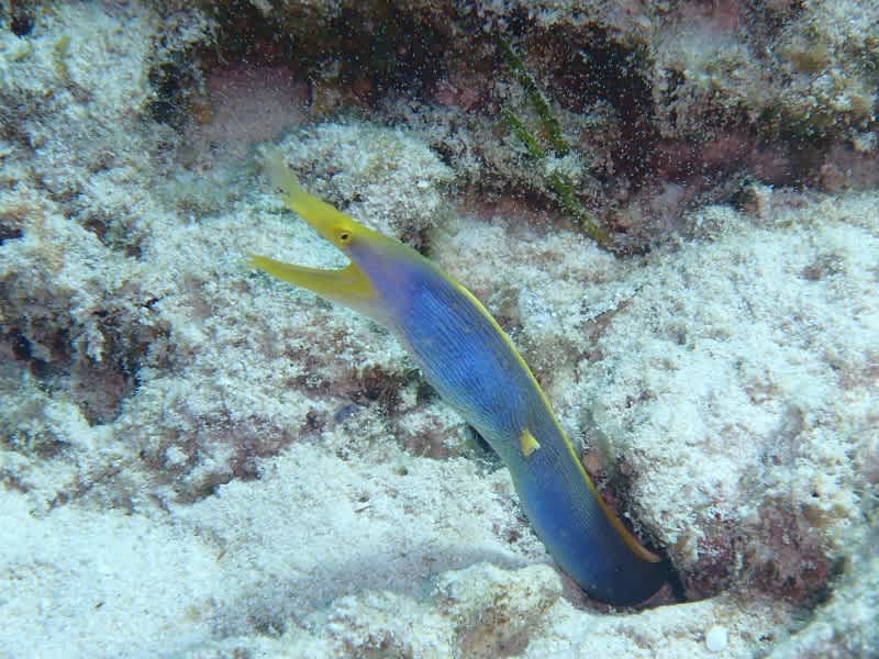 最初は黒島からスタートです♪青いウツボもだんだん幼魚の黒さも