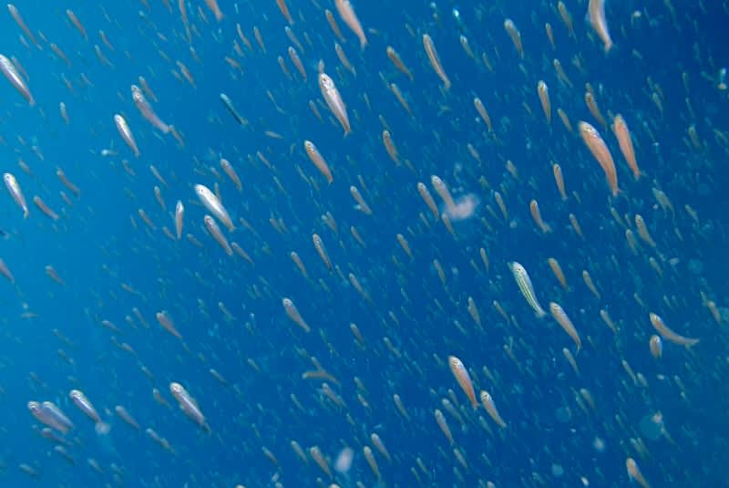 それを狙って、中型回遊魚がグルグル捕食してたり、アカククリの群れを