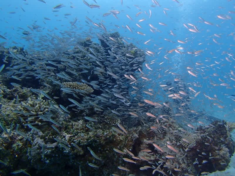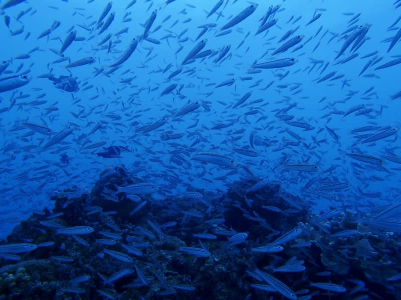 トサカハギとグルクンが川のようにどどんと群れててすごかったですよ☆