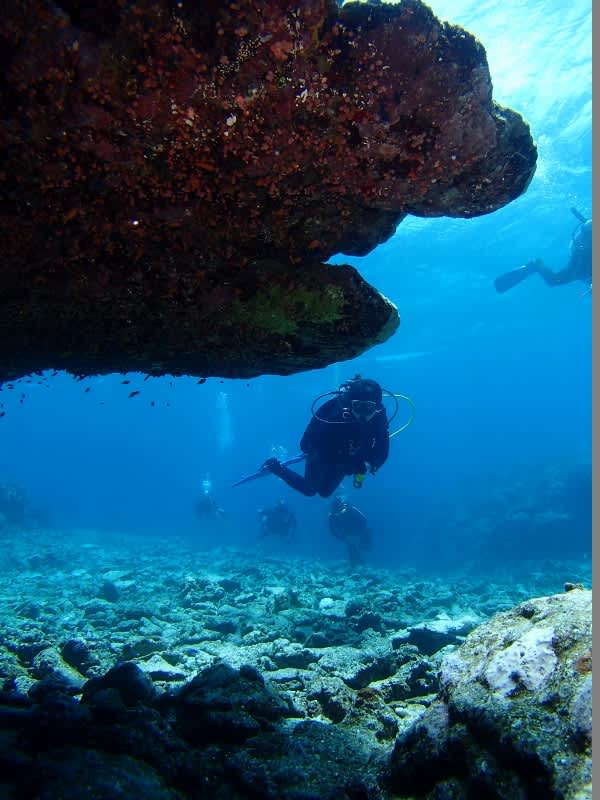 うきうき気分で泳いでいると・・ 突如岩が動き出しましたよ??