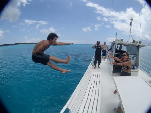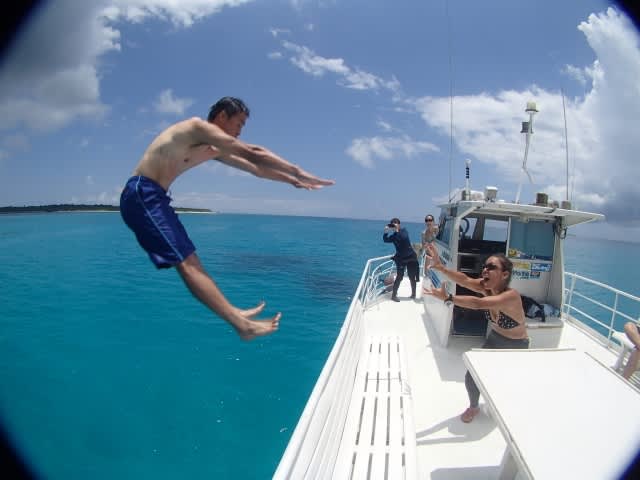 ピーカンで夏の黒島絶好調って感じで昼食後にはジャンプ大会からのカメハメ波???
